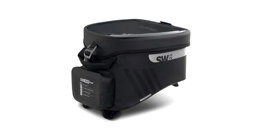 Vodotěsný vak na nádrž SW23B o objemu 14 litrů s univerzálním popruhovým systémem pro instalaci na plastové nebo kovové nádrže. Volitelný 4-bodový magnetický systém pro kovové nádrže (Ref. X1SL11). Klopě, která zcela zakrývá voděodolné zipy, je hlavní komora plně vodotěsná a ochrání všechny cennosti