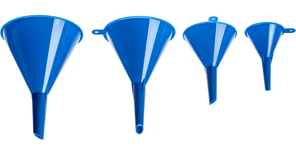 čtyři trychtýře např.pro doplňování oleje ve čtyřech průměrech: 50, 75, 100, 115mm