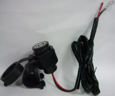 Vodotěsná USB zásuvka 12V s držákemZásuvka 12V s držákem na řidítka (22 i 25 mm), 2x USB.
