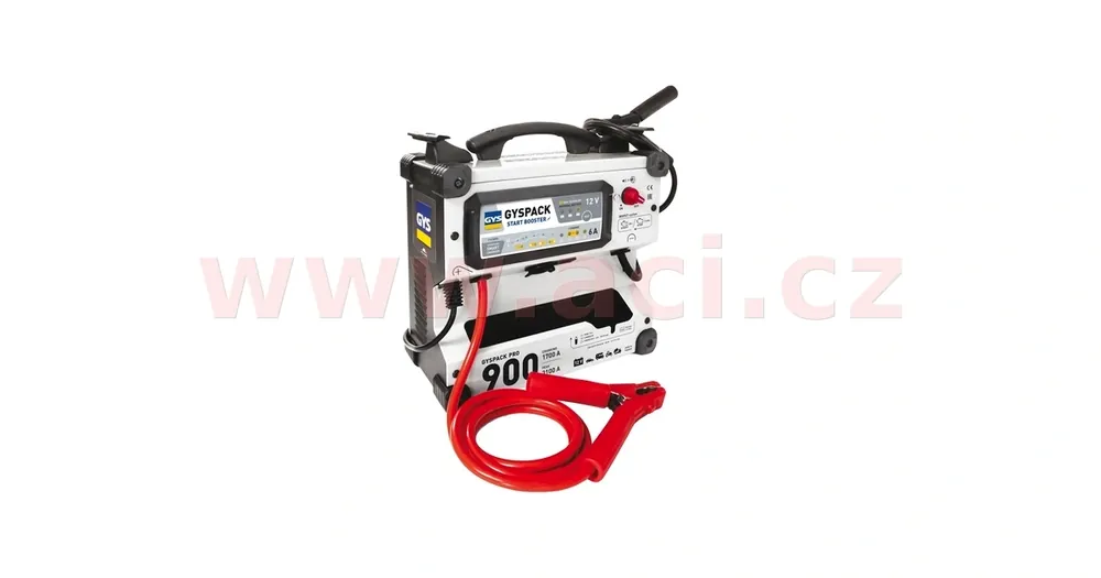 Profesionální startovací zdroj s integrovanou 12 V nabíječkou vnitřní baterie Vysoce výkonný startovací zdroj Vybavený kyselino-olověným akumulátorem 30 Ah,  830 A, 3100 A špičkový strtovací proud. Gyspack PRO 900 je ideální pro startování osobních aut a dodávek. Ideální pro práci 'v terén…